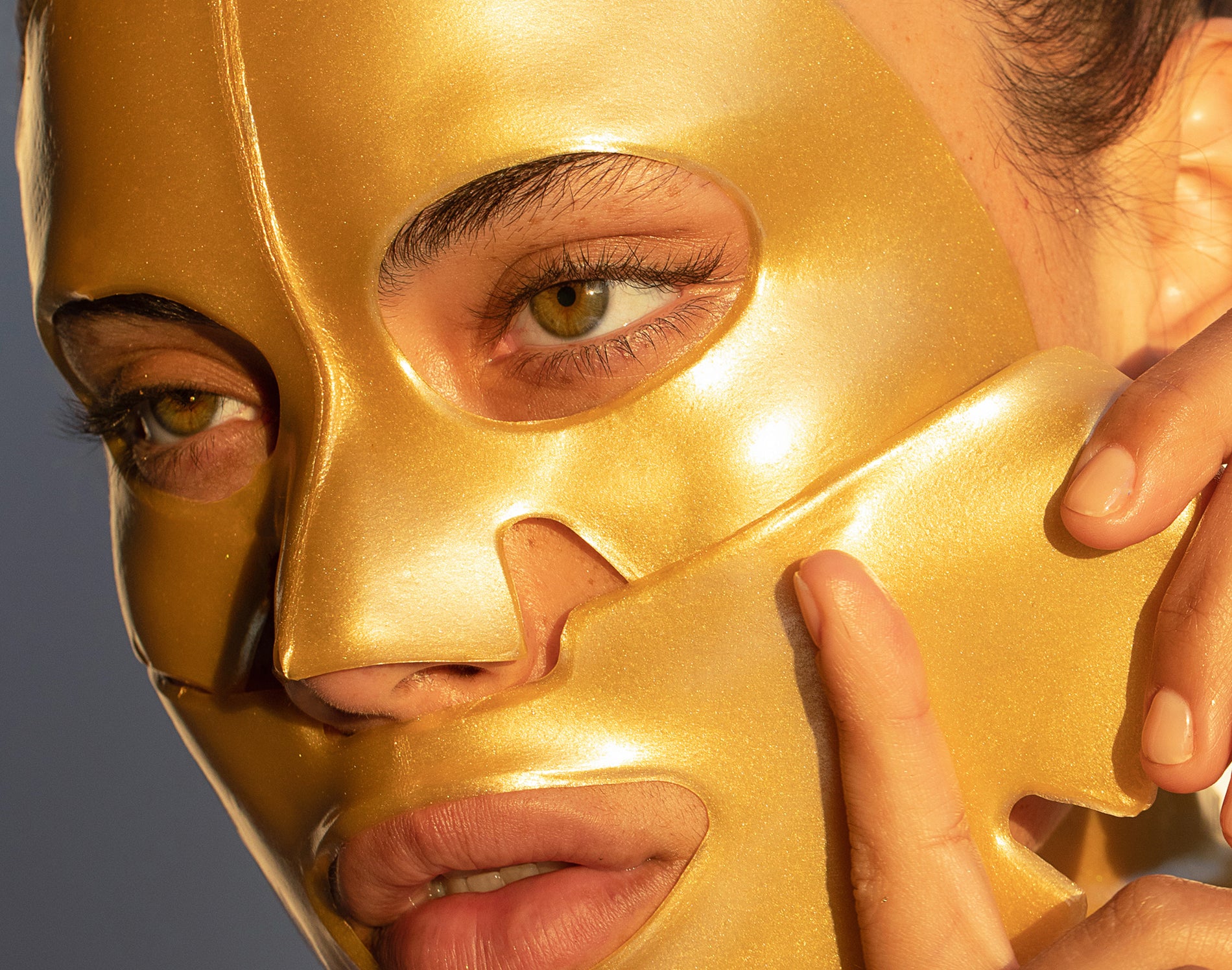 Gold face mask knesko on a beautiful woman