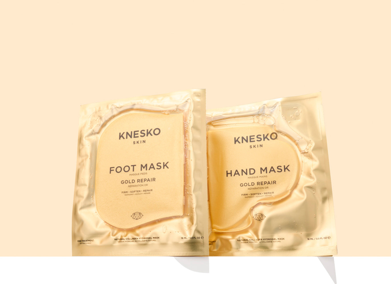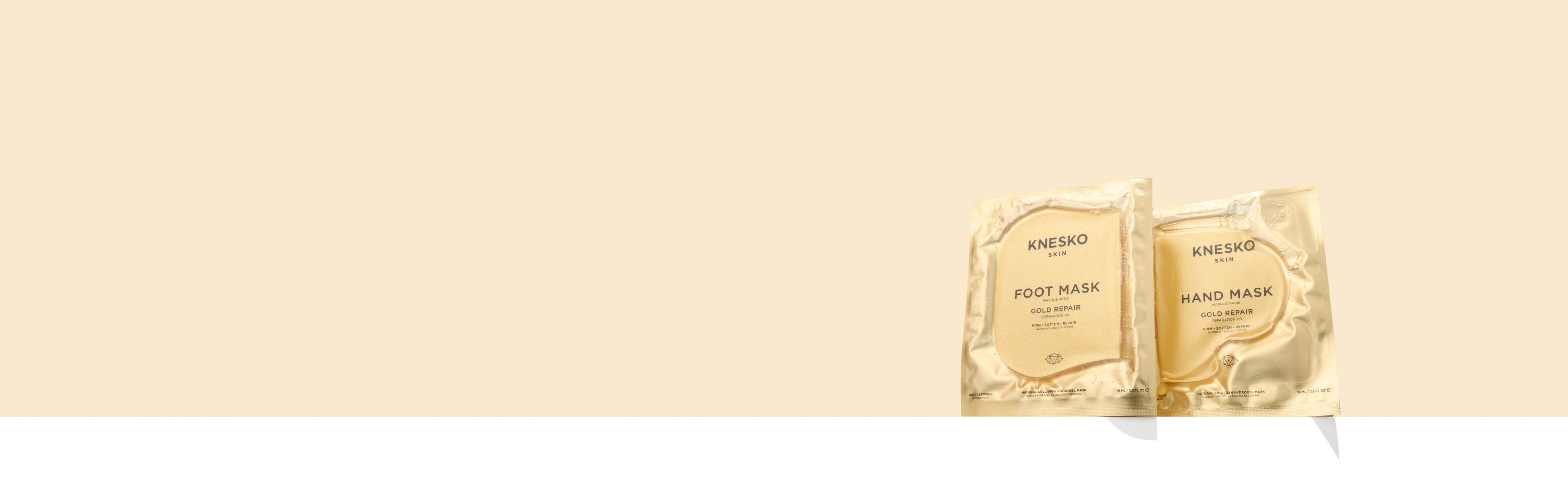 An extension of our best-selling Gold Repair collection, our hand and foot masks bring our signature collagen hydrogel treatment to targeted areas. Each product uses cutting-edge formulas and ingredients often reserved for facial care, such as peptides, collagen, elastin and sodium hyaluronate to hydrate, soften and smooth the skin.