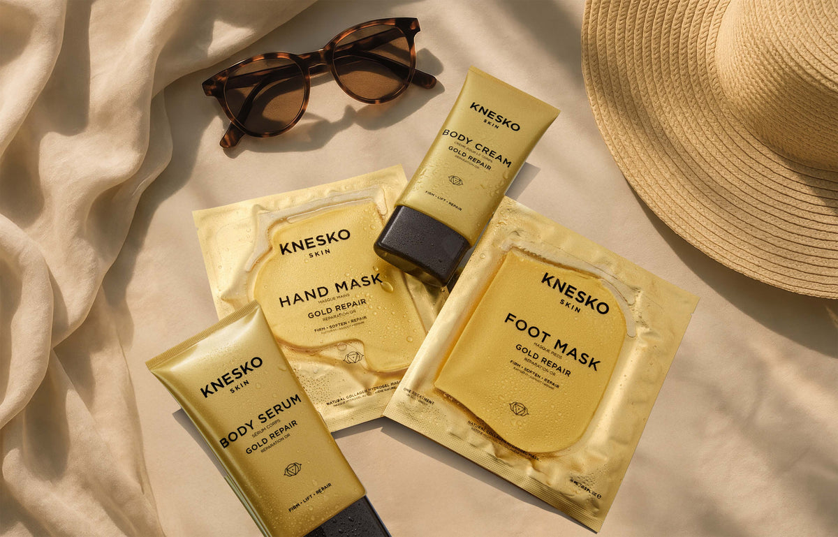 Introducing the Limited Edition Gold Repair Body Collection Travel Kit, perfect for maintaining exceptional care of your skin on the go.