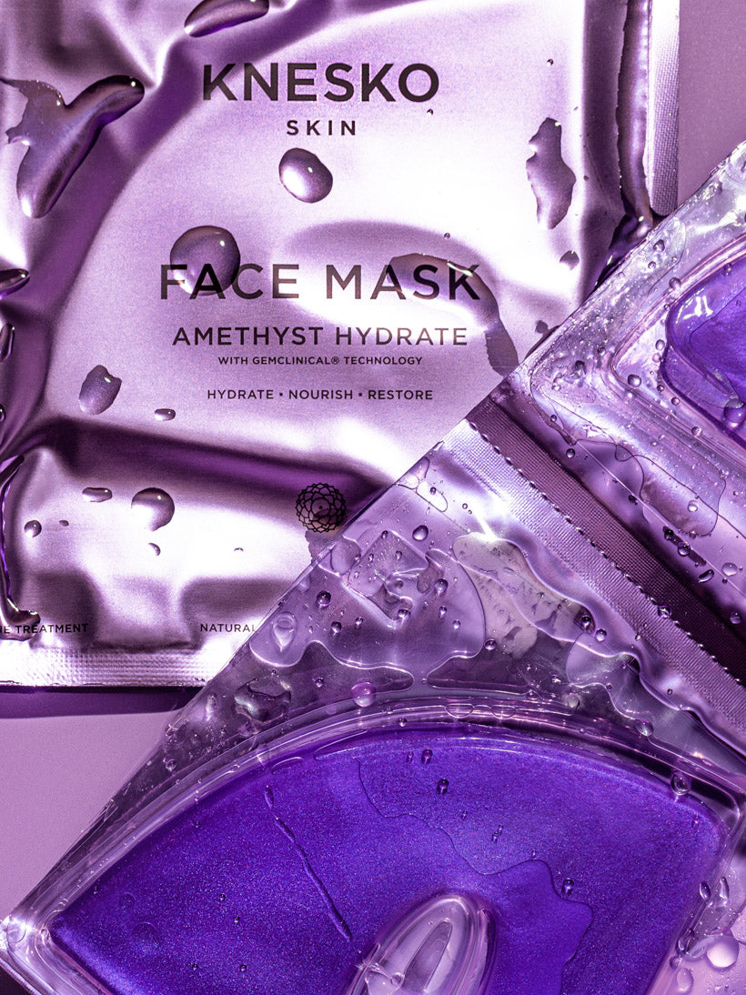 The Amethyst Hydrate Nourishing Facial Set is a complete ritual to restore lasting hydration and radiant, supple skin. Amethyst-infused collagen masks and the daily face serum are powered by our GEMCLINICAL® Technology and feature squalane, ceramides, and multi-weight hyaluronic acid. Together, they deeply replenish moisture, smooth the look of fine lines, and strengthen the skin barrier. Amplify results with the cooling Amethyst Roller to calm and revitalize, then complete your ritual with a Crown Chakra Meditation guided by KNESKO Founder and Reiki Master for skin-and-spirit harmony.