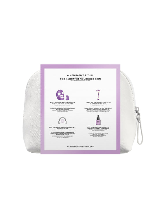Hydrate, nourish, and restore in one luxurious ritual that feeds skin with deep hydration and care. The Amethyst Hydrate Nourishing Facial Set delivers instant, visible results with amethyst-infused masks, a facial serum, a sculpting Amethyst Gemstone Roller to boost circulation, and a guided meditation to inspire mental clarity. Perfect for replenishing skin after travel, targeting seasonal dryness, or for a weekly intensive hydrating ritual.