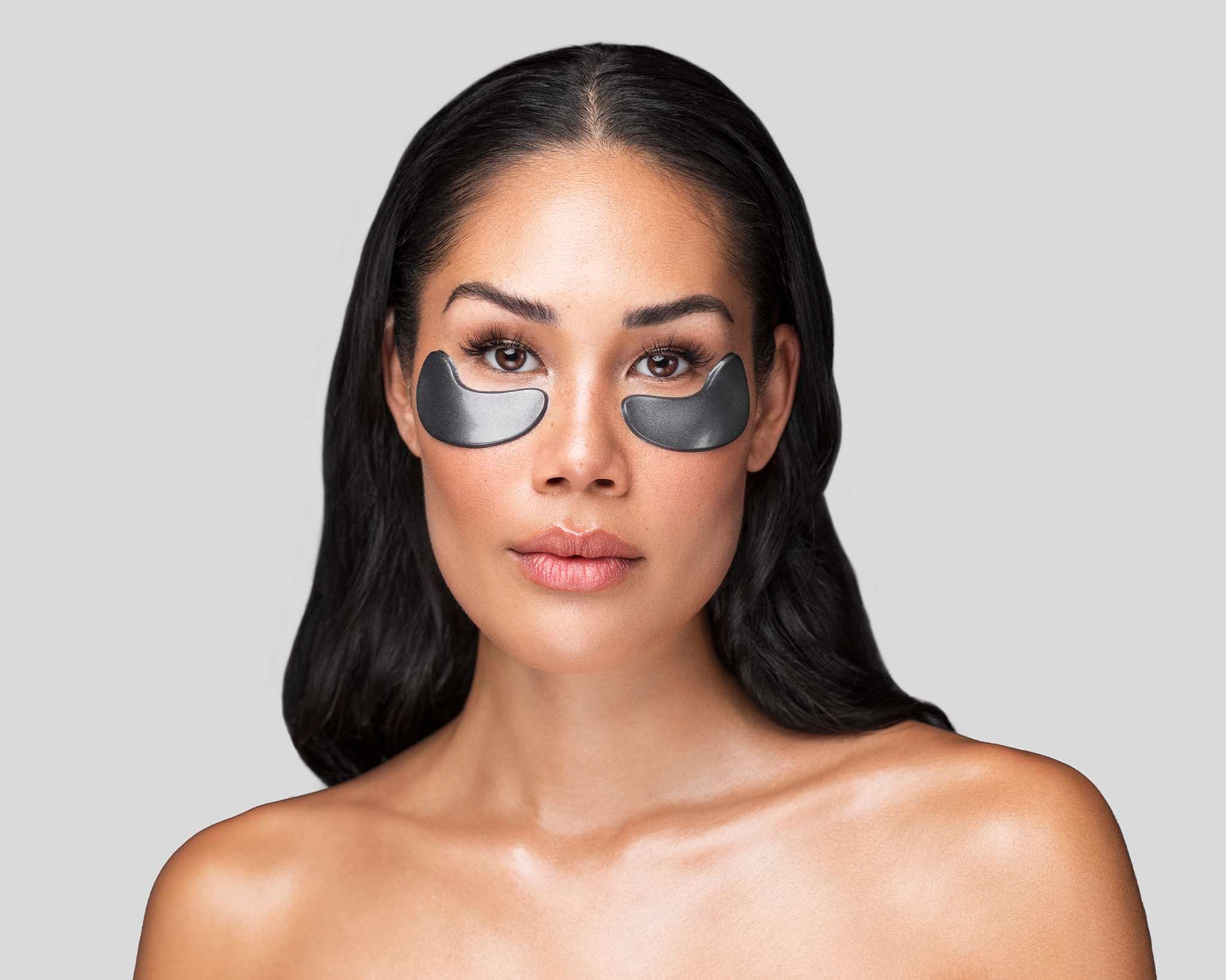 A woman using a Black Pearl Detox Collagen Eye Mask.