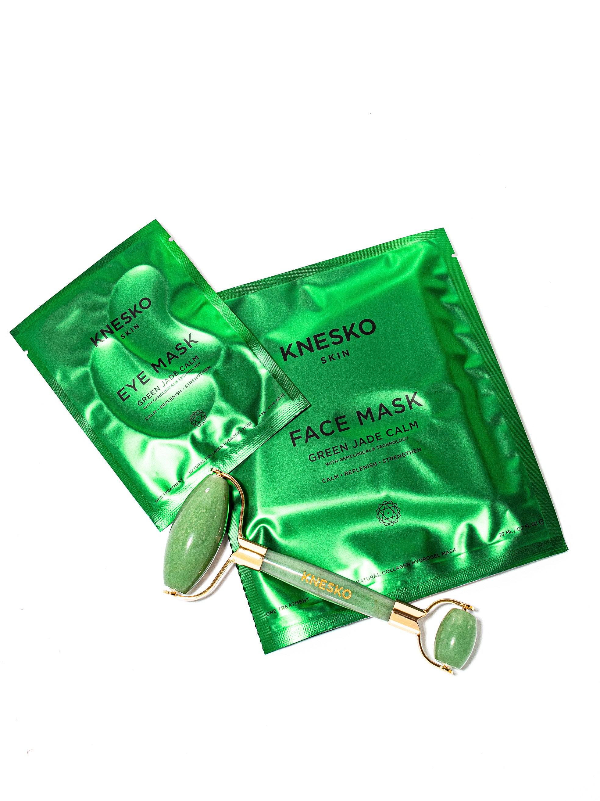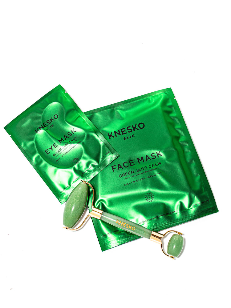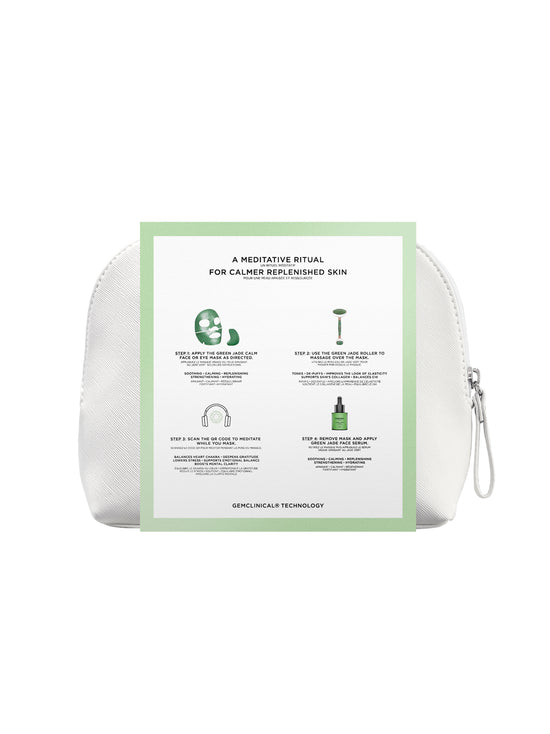 The Green Jade Calm Facial Set is a complete ritual to soothe, strengthen, and restore balance to sensitive or stressed skin. Powered by GEMCLINICAL® Technology, our jade-infused masks and the daily face serum are formulated with tiger grass, probiotics, and colloidal oatmeal to visibly calm irritation, reinforce the skin barrier, and promote resilience. Enhance results with the cooling Green Jade Roller to sculpt and refresh, then complete your ritual with a Heart Chakra Gratitude Meditation guided by KNESKO Founder and Reiki Master for skin-and-spirit harmony.